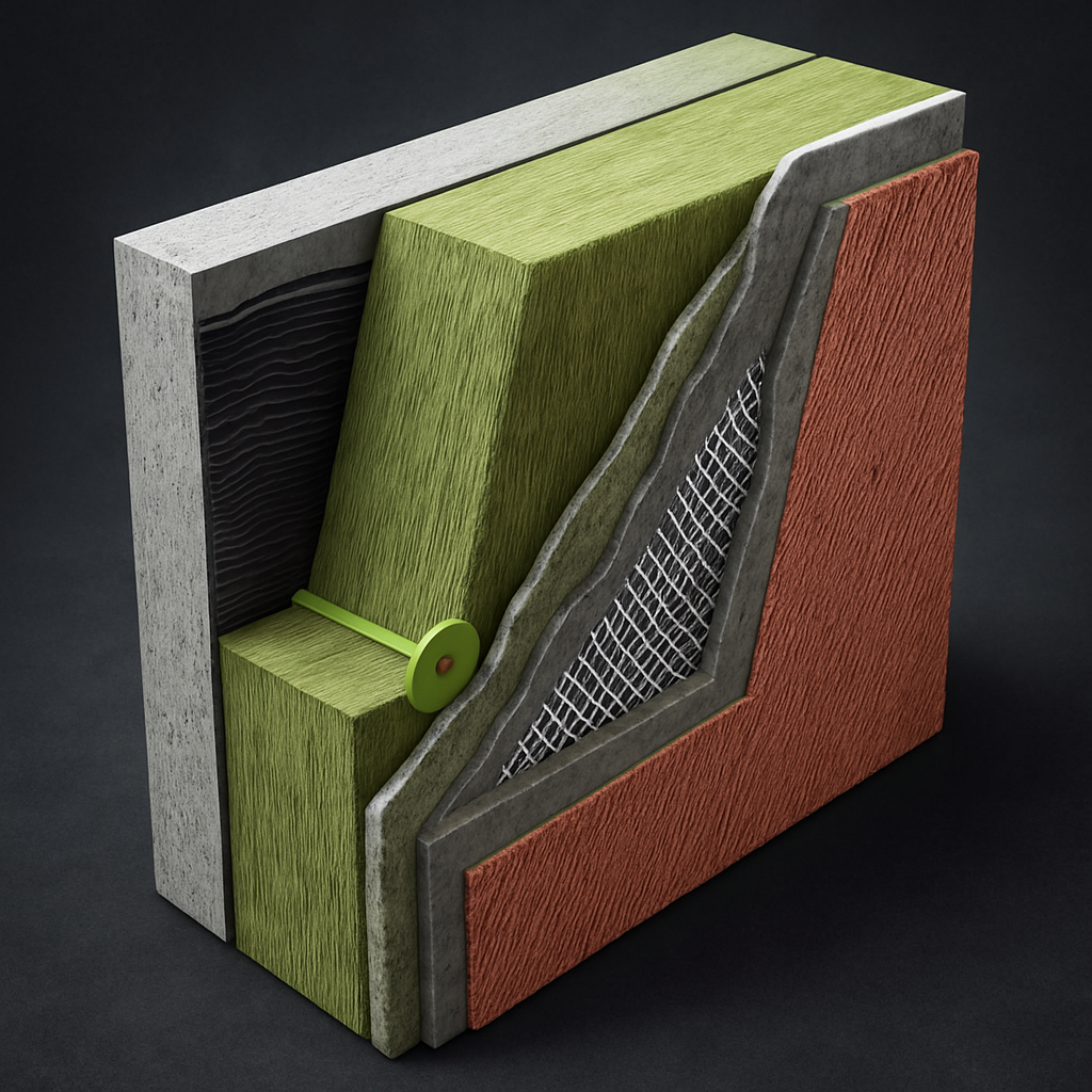 Базальтовая вата считается одним из самых надёжных материалов для утепления стен. Она отлично удерживает тепло, помогает дому оставаться тёплым зимой и прохладным летом, при этом создавая комфортную звукоизоляцию. Её главный плюс — абсолютная негорючесть, ведь она сделана из натурального камня и выдерживает очень высокие температуры. Такой утеплитель безопасен, экологичен и служит десятилетиями, не теряя форму и свойства. Стены с базальтовой ватой «дышат», внутри не накапливается влага, а значит — нет риска плесени и конденсата. Это ровно тот тип утепления, который делает дом долговечным, тёплым и по-настоящему надёжным.